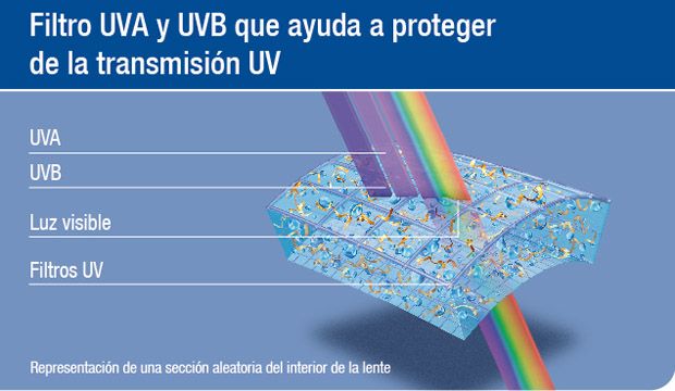 Todas las lentes de contacto de la marca ACUVUE® tiene filtro UV Clase 1 o clase 2 para ayudar a proporcionar protección frente a la transmisión de la dañina radiación UV a través de la córnea hacia el interior del ojo. Las lentes de contacto con filtro UV no son sustitutas de gafas protectoras de UV como las gafas de sol.
